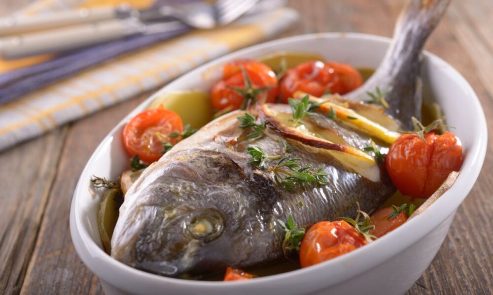 Baked sea bream with potatoes and cherry tomatoes: a simple and perfect baked fish second course for all occasions.