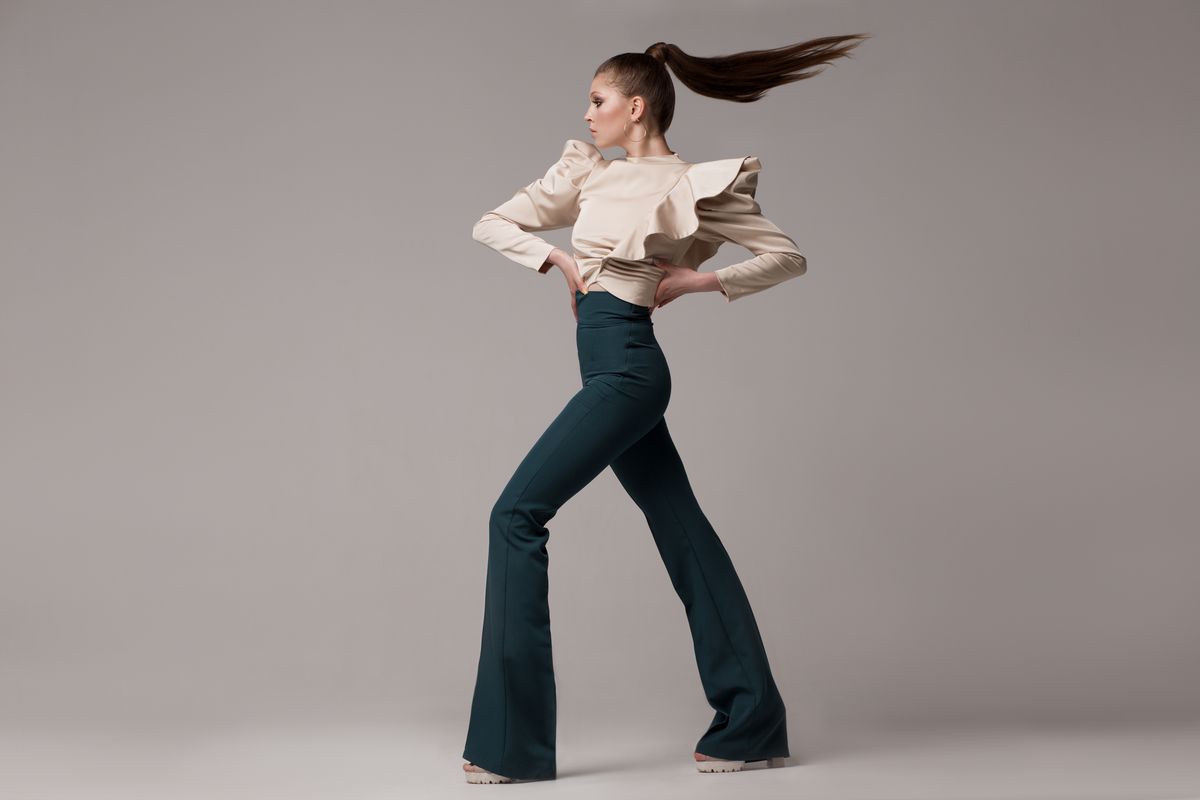 High-waisted, palazzo and flare trousers are extremely comfortable thanks to a soft and enveloping fit from the navel to the bottom combined with the wide leg: they are the perfect model for those who want to be elegant, slim their height and focus on platform shoes such as ankle boots, combat boots and Mary Janes or even simply a classic moccasin.