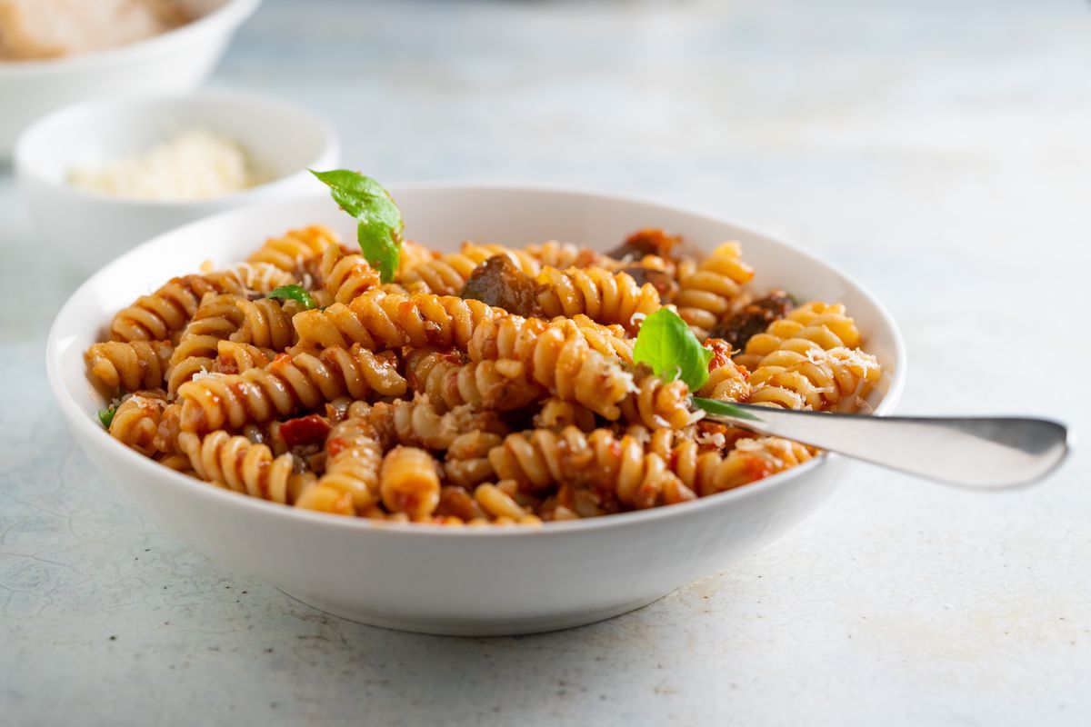 - Drain the fusilli and quickly toss them in the pan with the vegetarian sauce. Plate up and…enjoy your meal!