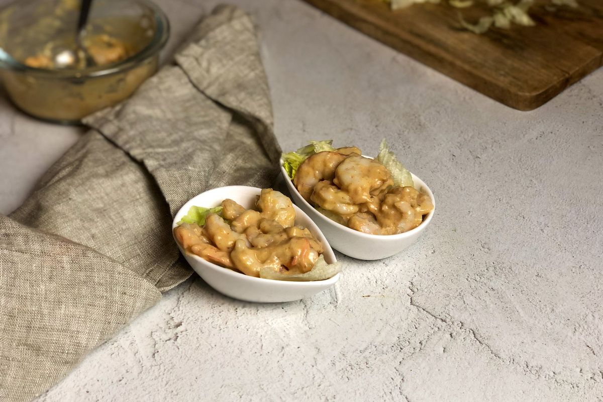 Let’s prepare a classic: prawn cocktail in pink sauce