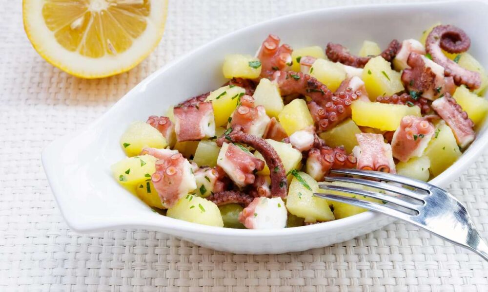 Octopus and potato salad is an appetizing dish, suitable for any occasion and prepared with a few simple ingredients.