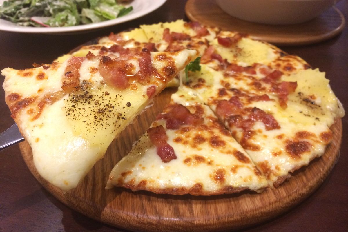 - Serve your delicious potato pizza with tomato and hot scamorza cheese.
