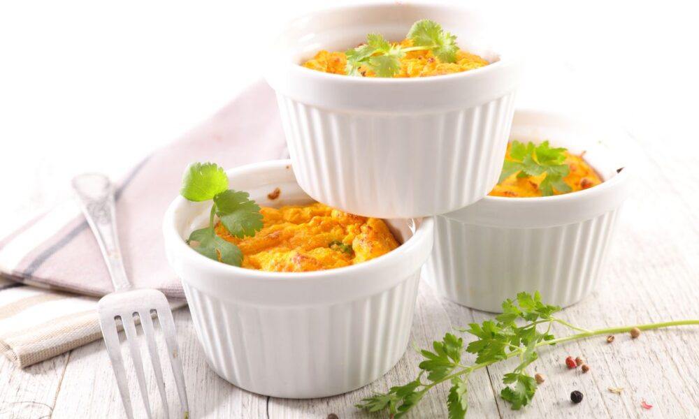 The recipe is really simple, you start by cooking the pumpkin in the oven and then blend it to obtain a puree to which you can add the other ingredients of the mixture. What makes the flans so soft and fluffy is the particular type of cooking which is done in the oven, but in a bain-marie . Have fun enriching the dough as you prefer with diced cheeses, diced speck, aromatic herbs and spices!