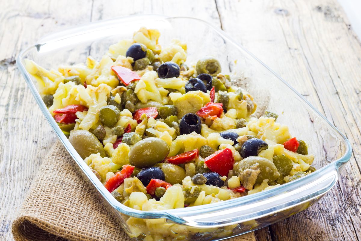 The reinforcement salad is a course of the Christmas tradition of Naples and its surroundings. It is a rich side dish prepared with boiled cauliflower, gherkins, green olives, onions, peppers and salted anchovies, and then seasoned with good extra virgin olive oil, fine salt and vinegar.