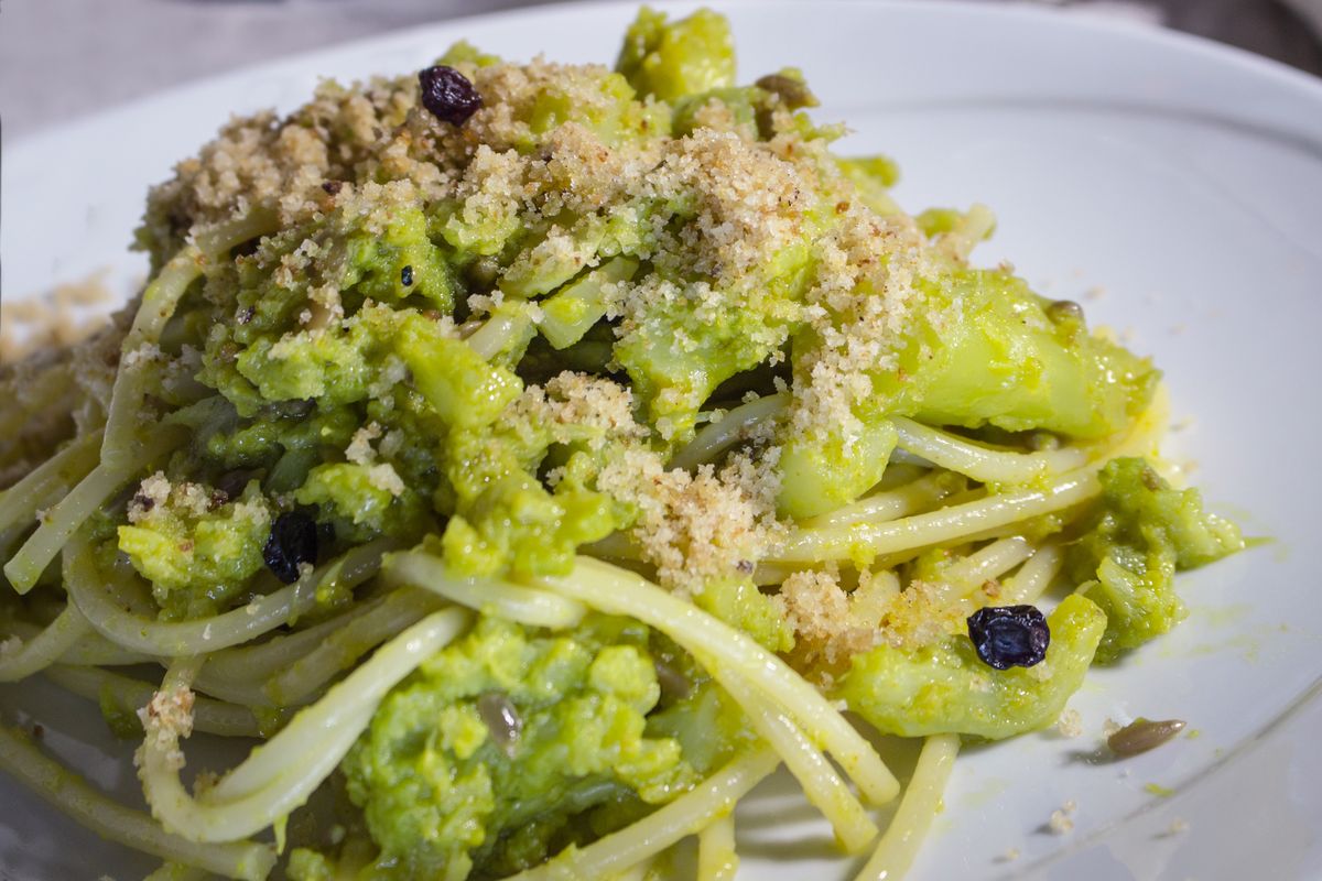 The main ingredient is white cauliflower which, following cooking, becomes creamy and tender. To tone down its flavour, there are some particular additions: pine nuts and raisins . These products make the dish – at the same time – crunchy, together with the breadcrumbs, which are added towards the end of the preparation.