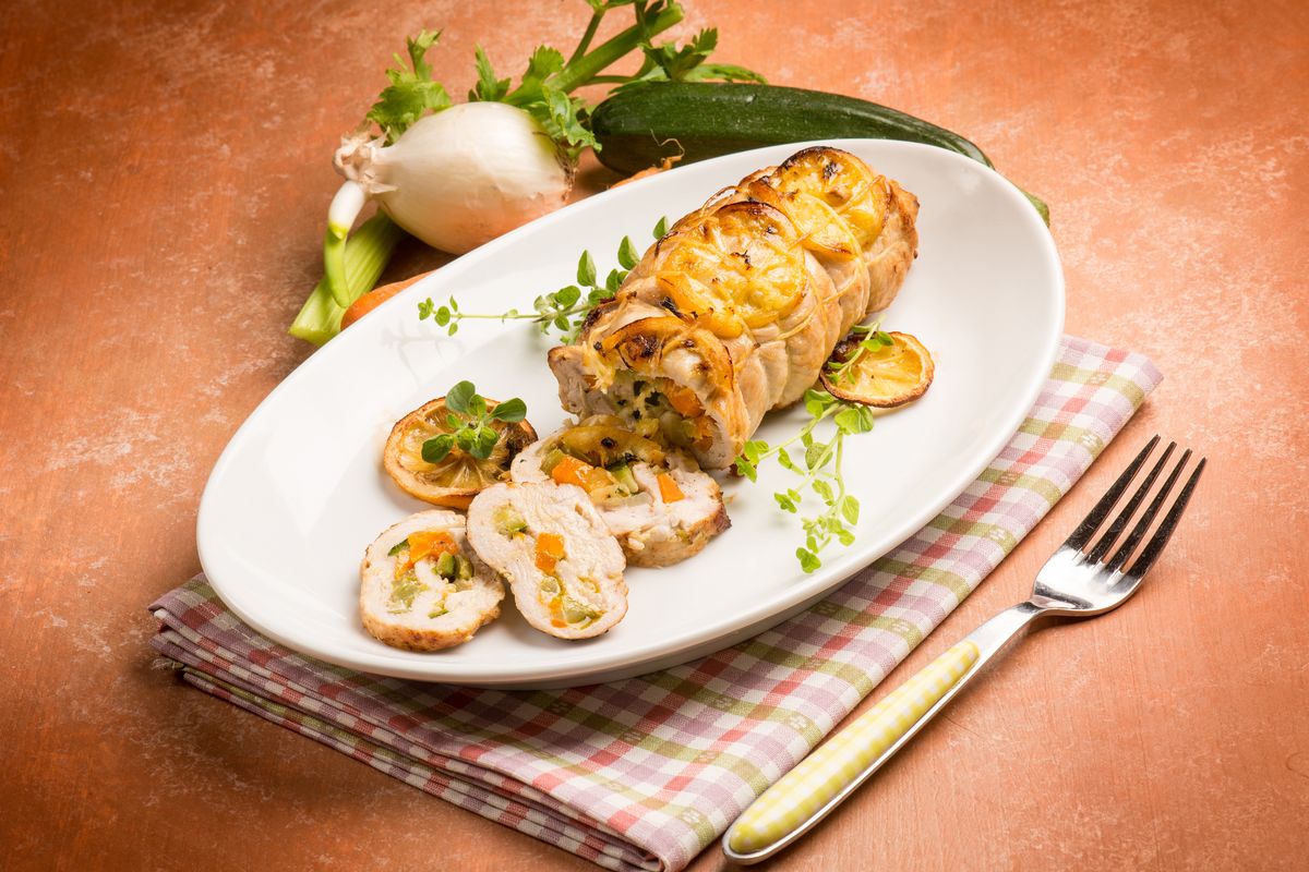 Turkey roulade stuffed with zucchini and bacon: an excellent second course based on white meat, perfect to be served even at a special dinner.