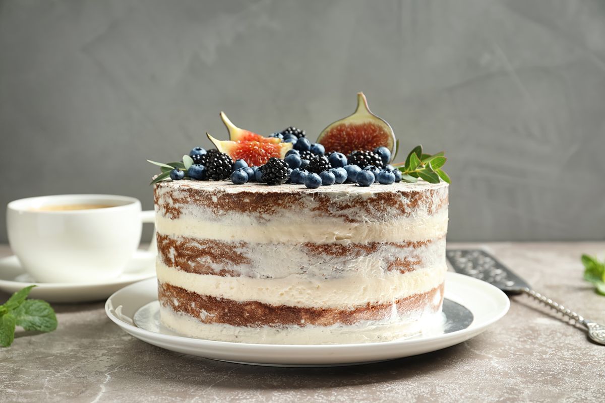 - After the rest time, take the cake back and decorate as desired with figs, blueberries and blackberries. Keep refrigerated until ready to serve.